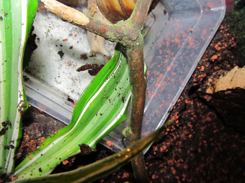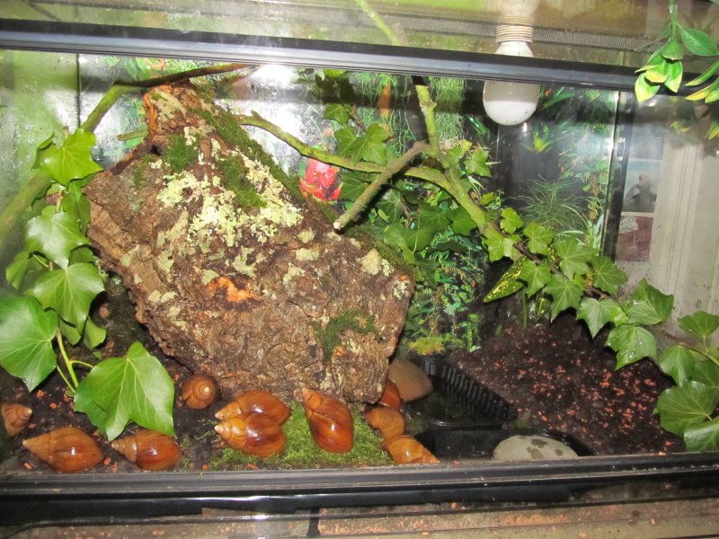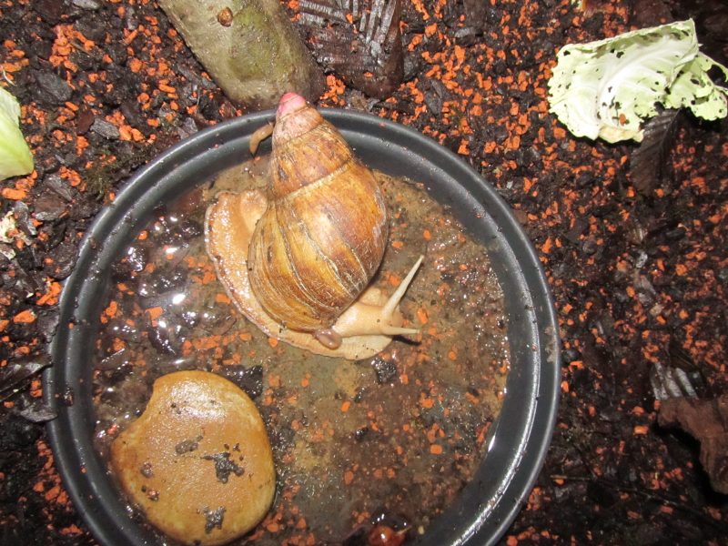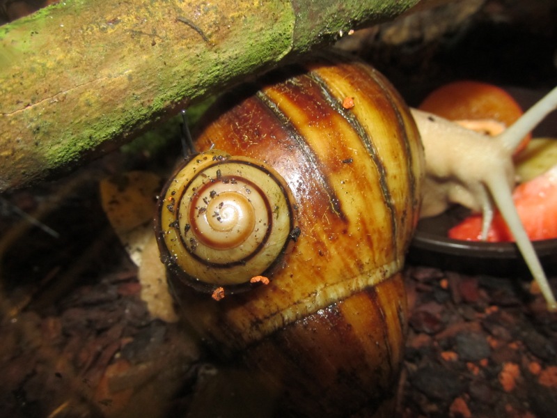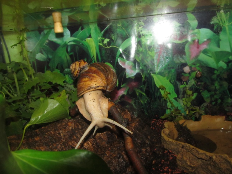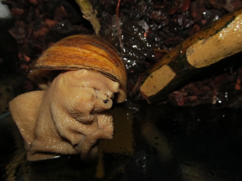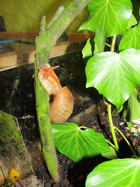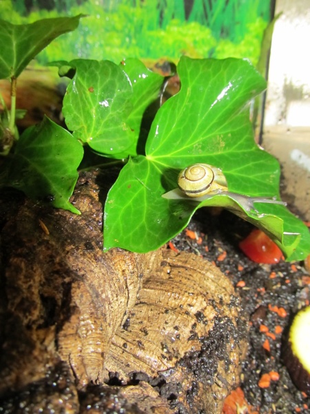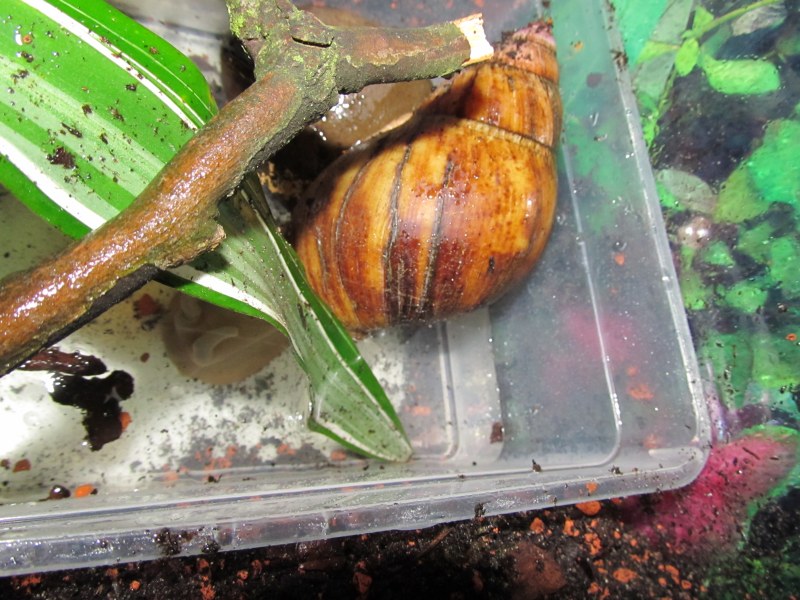 Der Ludwig war am essen aber als ich den Deckel anhob zum fotografieren hat er sich in sein Haus gezogen.