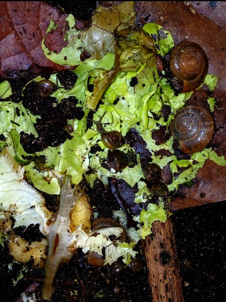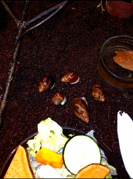 Habe sie momentan nur bei Zimmertemperatur (im Sommer ja nicht so das Problem) und eine Luftfeuchtigkeit von 85 - 90 %. Sie fressen sehr gerne Kürbis, Zucchini und Süßkartoffel, zu Salat, Packchoi und Pilzen.