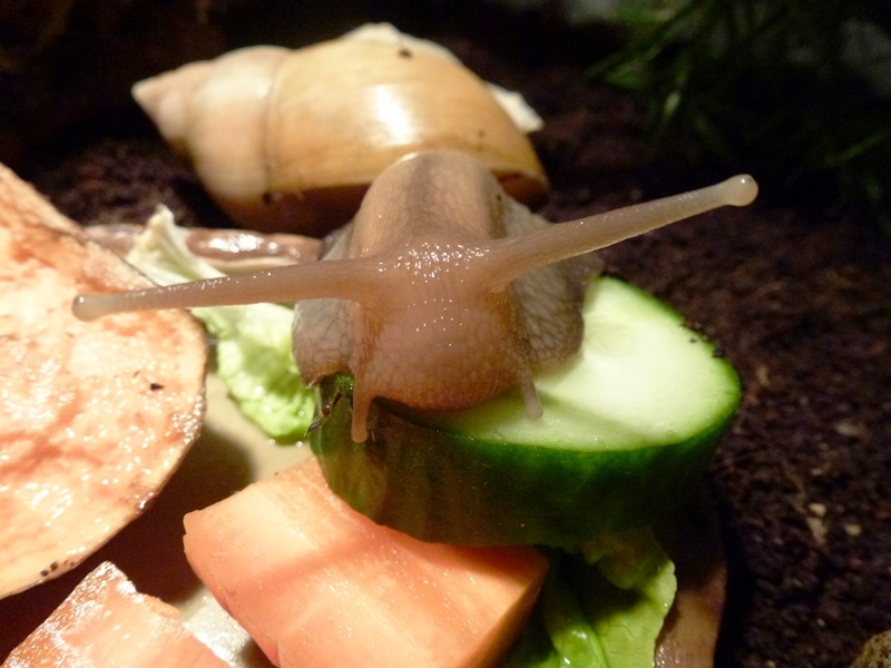 Marmorana Muralis sich etwa zwei Monate überhaupt nicht gerührt hatten, also einfach nur an der Glaswand hingen, war ich total glücklich, als sie nach dem letzten Putz quasi alle gleichzeitig aus ihrem Schlaf erwacht sind. Vielleicht motiviert durch die etwa 20 Cornu- und Weinbergnachzuchten, die den Winter über mit im Becken leben? Nunja, jedenfalls konnte ich letzte Woche diese beiden Gemeinschafts-Fressbilder aufnehmen, ein seltener Anblick bei den Marmoranas^^