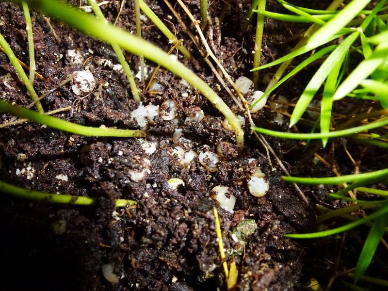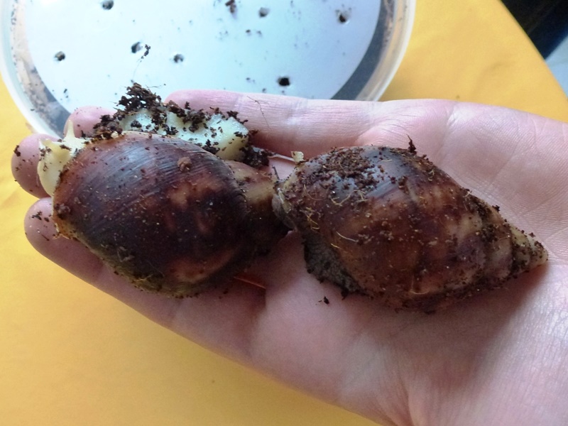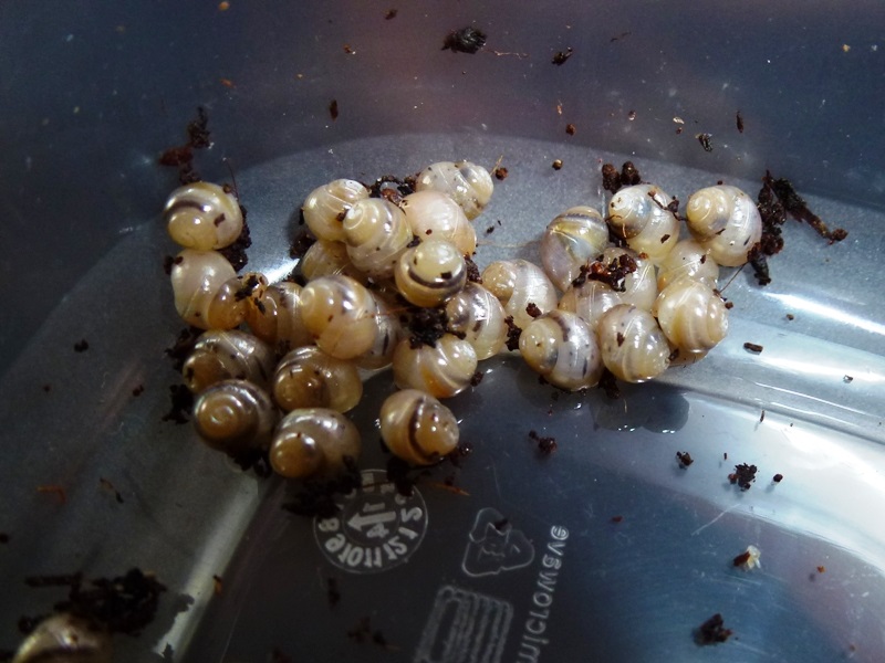...dieses Gelege geschlüpft ist! Es ist das erste meiner Schnecken, und mitten in die Wurzeln der Pflanze gelegt. Ich vermute, dass es ein Rodatzii-VA-Gelege ist, da die anderen eigentlich noch zu jung sind. Oder Jacky hat das Gelege mitgebracht, als er/sie zu mir gekommen ist. Naja - Schweren Herzens musste ich mich von den meisten trennen und einfrieren. Viele waren zum Glück noch gar nicht richtig geschlüpft. Ein paar musste ich aber doch behalten, das ging einfach nicht anders