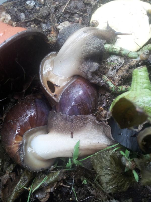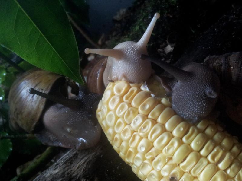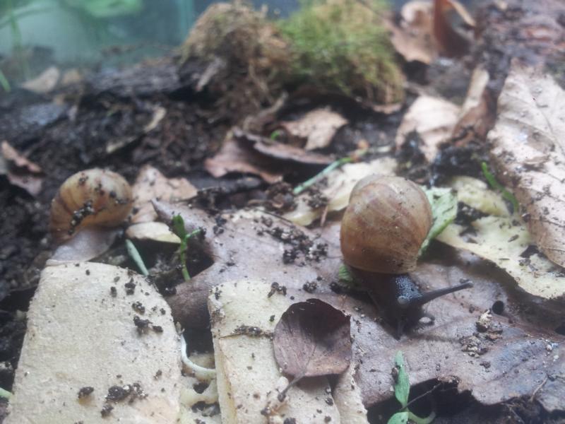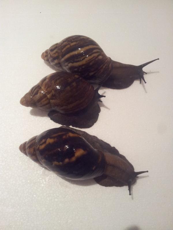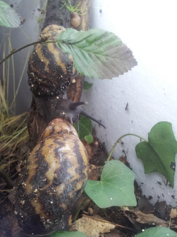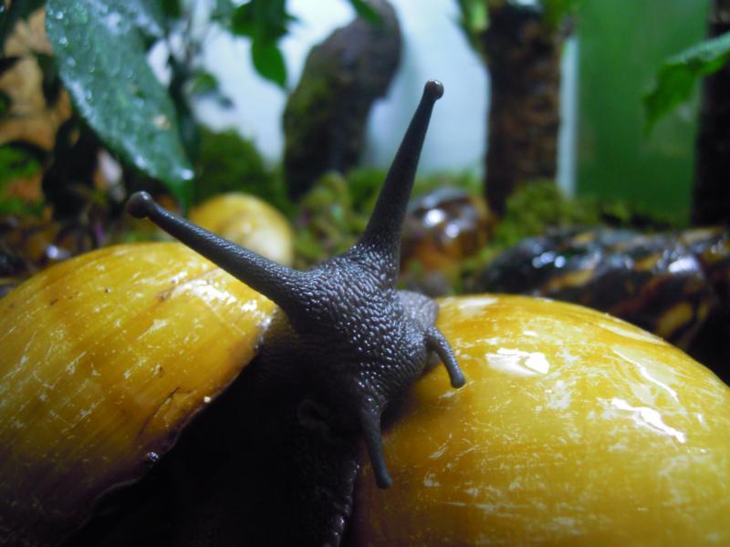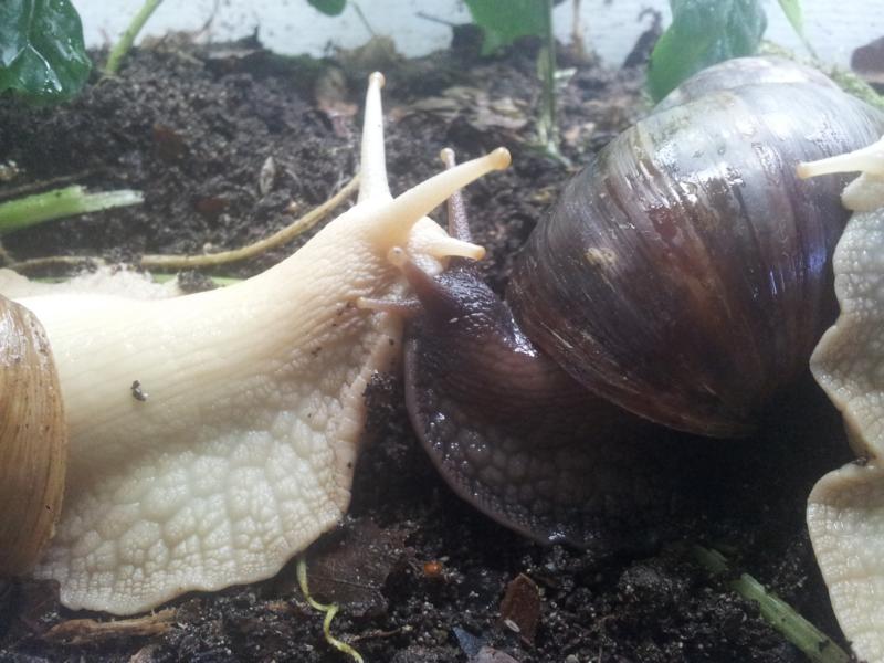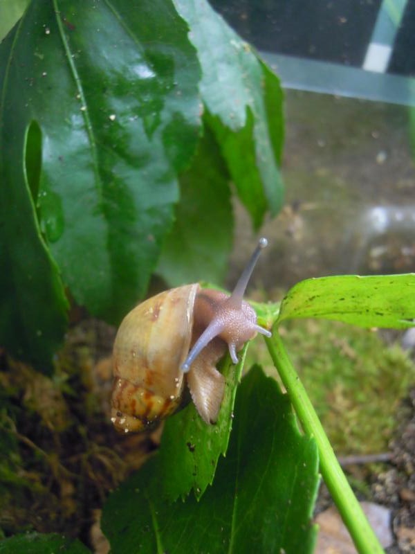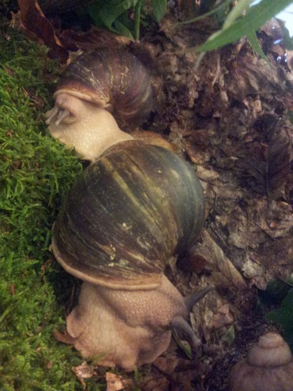 Eine der drei Achatina fulica rodatzii, an denen ich auf der letzten Terraristika einfach nicht vorbei gehen konnte... sie haben so tolle Weichkörper! Inzwischen sind sie schon doppelt so groß wie beim Kauf. Ich bin gespannt, wann sie anfangen, mich mit Eiersuche zu beschäftigen