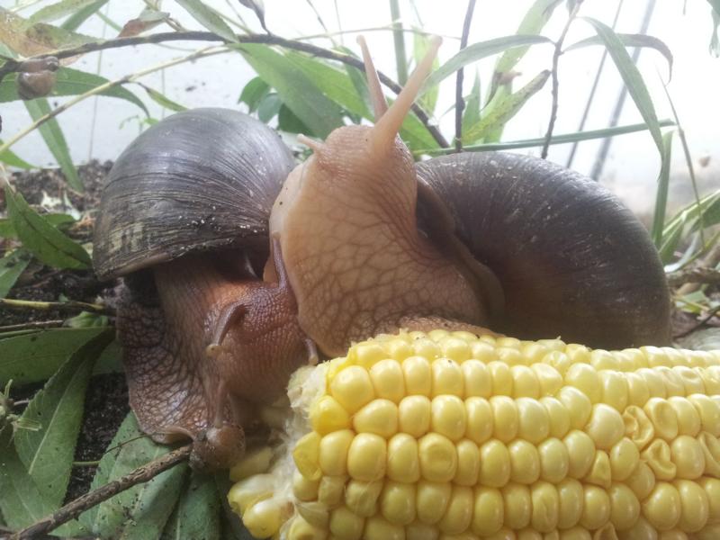 Der bislang einzige Archachatina camerunensis Nachwuchs wächst und gedeiht