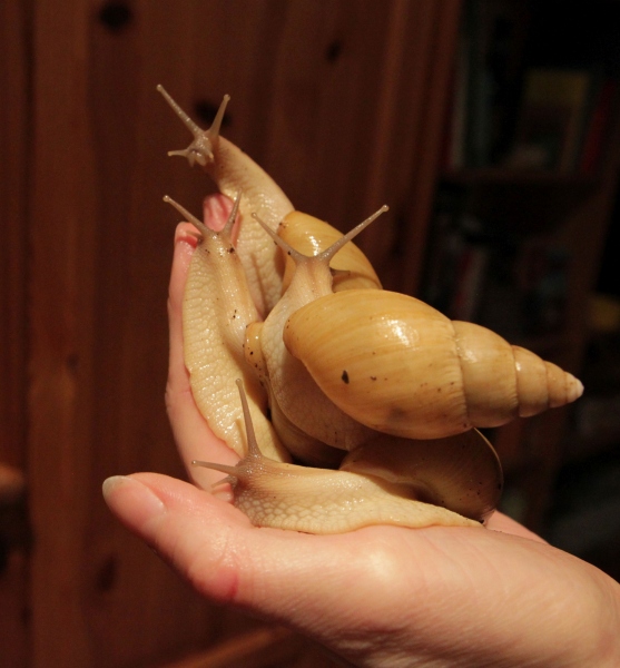 Die A. allisas machen mir seit einiger Zeit etwas Sorgen. Sie hängen teilweise nur an der Decke und fressen nicht. Und dann sind sie plötzlich wieder richtig aktiv und belästigen die Großen... Goldie ist wie ich mir schon dachte am nächsten Tag gestorben, was bei ihr am Alter gelegen haben kann. Deshalb hatte ich mir keine großen Gedanken gemacht. Jedoch ist ca. 2 Wochen danach die kleine Kruschelige (Crunchy) ebenfalls immer schwächer geworden... hatte aber definitiv kein Untergewicht! Ich hatte sie dann extra gesetzt, dort hat sie ebenfalls dann das Futter komplett verweigert und hat nur mal kurz etwas gefressen, wenn ich sie auf die Hand auf ein Blatt Salat gesetzt habe... nach ca. 2 Wochen ist sie ebenfalls gestorben... kurz darauf ist eine der gut gewachsenen mit der selben Symptomatik von der Decke gefallen... bei ihr weis ich aber ganz sicher, dass sie kurz zuvor noch sehr fit und agil war. Ich habe testweise dann mehrere A. allisas aus dem Becken genommen und in ein eigenes gesetzt... jedoch haben sie sich dort überhaupt nicht anders verhalten und immer wenn das erste mal geschwächt von der Decke fallen angesagt war, hat die jeweilige Schnecke höchstens noch 1 - 2 Wochen gelebt. Ich habe jetzt die restlichen 4 weiterhin im Gemeinschaftsbecken gelassen nachdem ich keine Besserung bei den extra gesetzten feststellen konnte und bin unentschlossen, ob es jetzt sinnvoller wäre sie doch extra zu setzten, was ja Umzugsstress bedeutet, oder eben nicht...