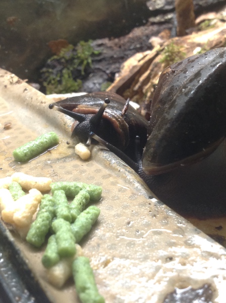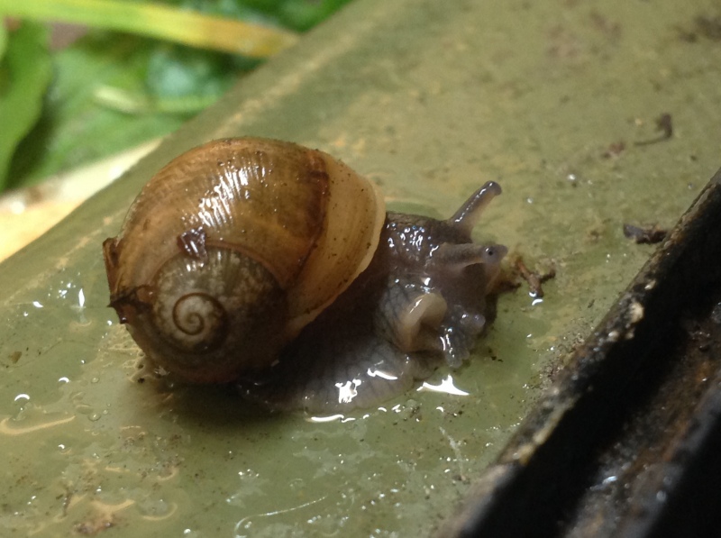 Ach freu ich mich Das kleine unbekannte Schneckchen im Terra hat nach fast einer halben Stunde geduldigen Wartens mit dem Fotoapperat endlich die Fühler herausgestreckt In der Vergrößerung könnte ich es erkennen...winzige Tentakel,ein Emodazwerg schön wachsen mein Spätzchen
