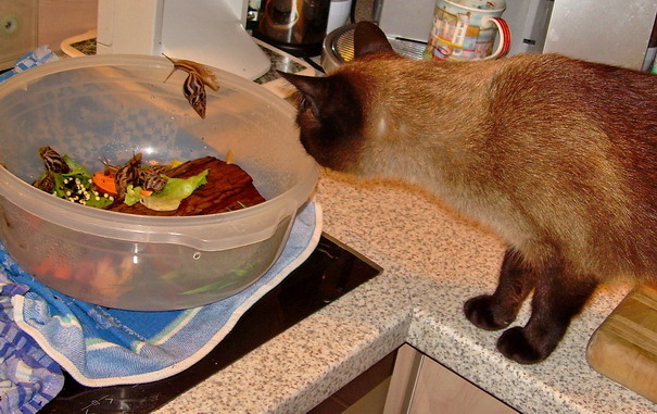 Minas hat mich beim Saubermachen des Terrariums beobachtet,