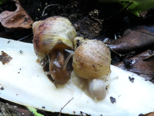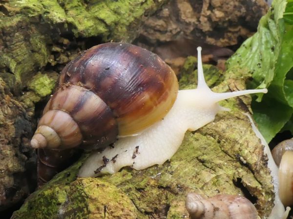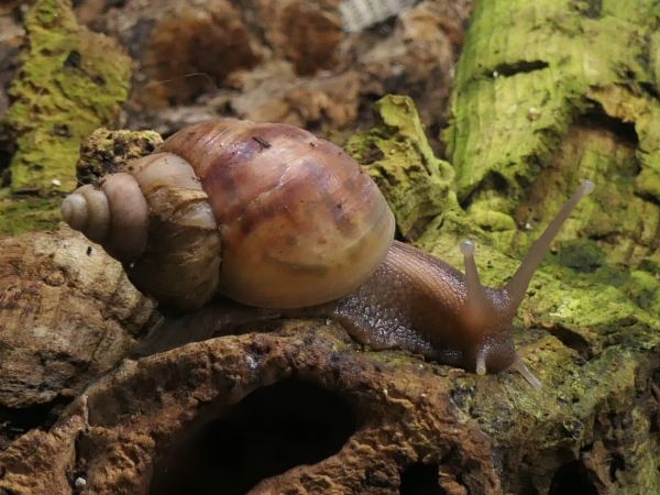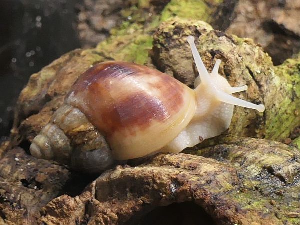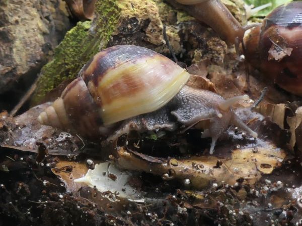 Bei meinen fünf hat sich ein bisschen was getan. Die beiden wildfarbenen und die White Jade haben ihre Blätterteigprobleme komplett überwunden und wachsen jetzt sehr schön gleichmäßig und zügig weiter. Die Wachstumsränder sind zwar nicht ganz das, was ich gewöhnt bin, aber für das, was sie überstanden haben, bin ich mehr als happy mit ihrem Zustand. Die beiden Albinohäuschen zieren sich zur Zeit noch etwas. Die Vollalbino wächst langsam, aber stetig und der Zuwachs wird von Woche zu Woche etwas glatter. Die Rodatzi macht mir leider wirklich Sorgen. Ich hoffe sehr, dass sie den Spalt irgendwann wird schließen können. An dieser Stelle hatte sie lange Zeit eine Delle, aber jetzt, wo sie wieder wächst, wächst das Häuschen an dieser Stelle leider nicht richtig mit. Aktuell schafft sie es noch sehr gut, sich in ihr Häuschen zurück zu ziehen. Sollte das irgendwann einmal nicht mehr der Fall sein, wird sie wohl leider doch getötet werden müssen. Solche Stellen gehen auf Verletzungen des Mantelsaums zurück. Vernarbt der Mantelsaum dauerhaft so stark, dass das Periostrakum nicht mehr richtig gebildet werden kann, kommt es zu solchen Spalten.