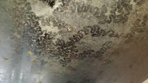 Das neue Terra ist nun 160 cm lang, 50 tief und 60 hoch. Dieses Mal habe ich gleich eine Badewanne mit bestellt und kleben lassen. Im Moment sieht das Becken halt noch fürchterlich kahl aus. Die Pflanzen habe ich sehr stark zurück geschnitten. Die Ficus P. hatte das ganze Becken sehr stark durchwurzelt. Was ich sehr interessant fand: Ich hatte im September, als ich das alte Becken eingerichtet habe, Pinienrindenstücke unter die Erde gemischt. Von diesen war jetzt nichts mehr zu sehen. Sie waren vollkommen verarbeitet.