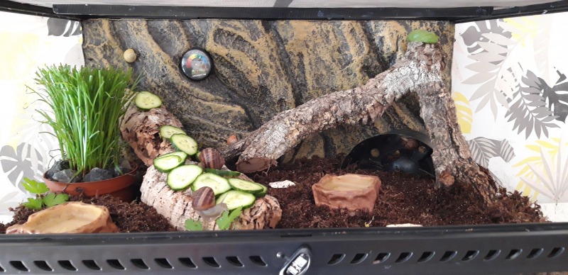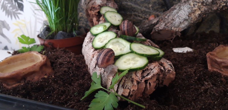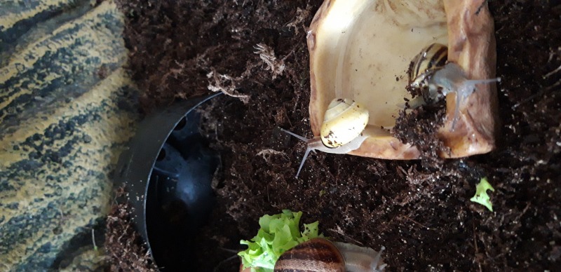 Filu hat geschrieben: in einem Terrarium sah ich Achatina fulica. Ich bin zwar kein Achatschnecki Experte, aber ich bin sicher 30% Luftfeuchte und 20 C° sind schlecht. Der Boden war übersät mit Baby Häusern und ich habe keine einzige lebende gesehen. Die großen waren verbuddelt, die Erde nicht aufgekalkt Auf dem Schild darunter stand ,,Bodengrund: Erde" Und die Wasserschale war aus Stein