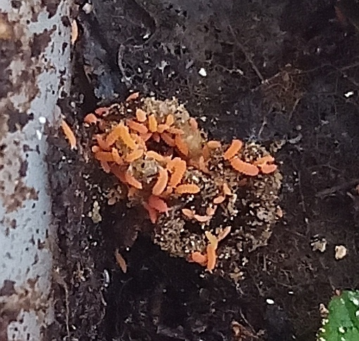 In der großen Box sind Kurzflügler aufgetaucht und ziemlich gleichzeitig habe ich immer weniger von den roten Springschwänzen gesehen. Ich hatte schon üble Sorgen um die süßen Kobolde, aber die hatten sich nur tief in den Boden zurückgezogen und sind nun auch wieder häufiger. Zudem sehe ich die Kurzflügler und ihre Larven auch immer nur am Gemüse und den Fischflocken futtern, ich hoffe mal daß es also keine der räuberischen Arten ist.