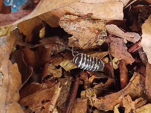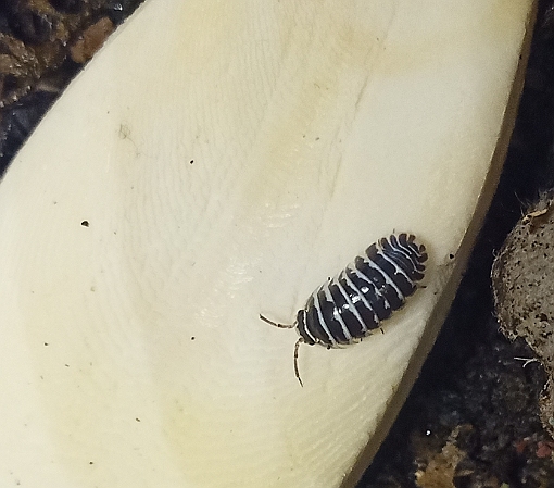 Die Asseln in der kleinen Box sind inzwischen so zahlreich daß ich etliche davon in den Garten entlassen konnte. Die Bandfüßer haben sich prima entwickelt, sind immer kräftig am Mitfuttern und sind einfach meine Lieblinge. Die Moosasseln entwickeln sich auch gut, diese Art möchte ich noch etwas fördern da ich sie so wunderschön finde.