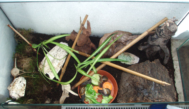 Natürlich etwas eng, aber ich fand sie noch verhältnismäßig gemütlich eingerichtet und die Schnecken mussten ja auch nur kurze Zeit darin wohnen.