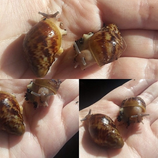 . Gestern sind meine Tochter und ich spazieren gegangen, nach dem Regen, und bei uns am See plötzlich haufenweise Weinbergschnecken