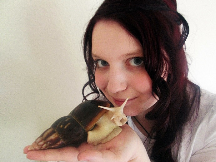 Nein verdammt ! Ich liebe meine Schnecken. Ihr wisst einfach nicht, wie genial entspannend es sein kann auf der Couch oder dem Bett rumzugammeln und zu beobachten wie sie ganz langsam und neugierig ihr Köpfchen in deine Richtung drehen. Wie ihre Fühler sich nach dir strecken, als wollten sie dich unbedingt greifen. Stups, da kommt der Fühler an die Spitze eines meiner Haare und prompt muss untersucht werden, was das gerade war. Bewege ich mich zu schnell, zieht sie sich etwas ein und der feuchte Körper blubbert ganz laut bei der schnellen Reaktion. Ein Blubbern....klingt ganz vorwurfsvoll. Als wollten sie einfach sagen, bleib liegen. Halt still. Sei ruhig..