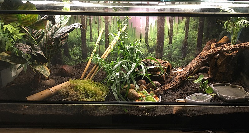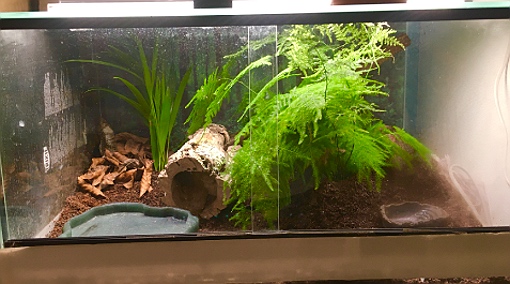 Ich glaube, das kam hier noch gar nicht zur Sprache, aber ich habe jetzt eine neue Beleuchtung für die Terrarien. Außerdem hat das große Terra nun eine zweite Heizmatte bekommen, da eine einzige die Temperaturen nicht mehr halten konnte. Mit der neuen Beleuchtung sieht es, wie ich finde, auch gemütlicher und schöner aus.