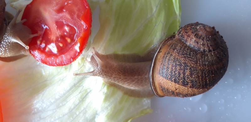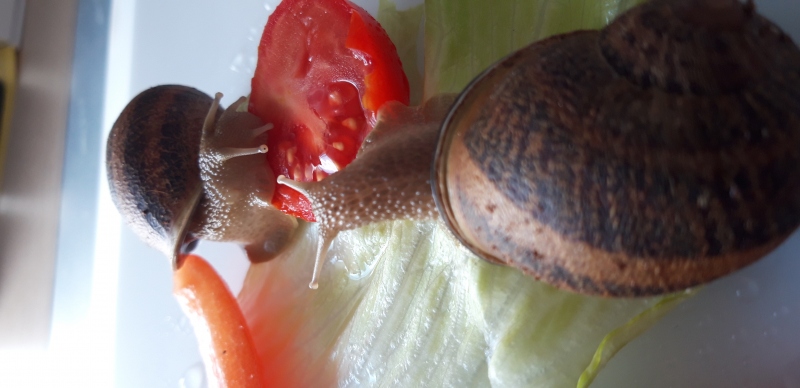 Im Moment habe ich 6 Cornu aspersum maximum in einem 60×45×30 Terra und 5 Cepaea nemoralis und hortensis (Bänderschnecken) mit zwei Weinbergschnecken-Jungtieren vorübergehend in einem 30×30×30