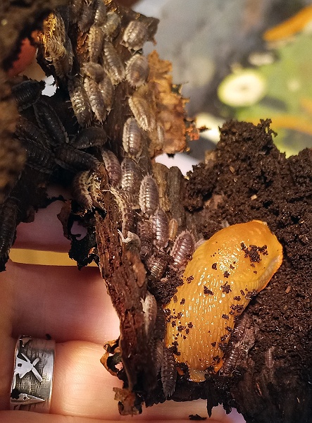 In der Walderde waren auch noch ein paar äußerst hübsche kleine hellgraue Nacktschnecken, die führen aber ein total heimliches Leben, da krieg ich nur ganz selten mal eine zu Gesicht wenn sie grad von einem Versteck ins nächste schneckt.