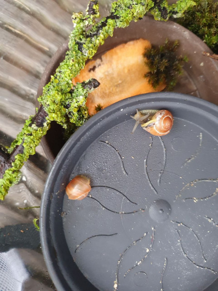 Ja, viele meiner Fotos sind am Tag entstanden. Sie kommen auch raus wenn es trocken ist, aber sicher wenn es regnet und stürzen sich auf das Buffet.Sind deine Schneckies auch öfter am Tag unterwegs ? Weil bei einigen Fotos sieht es deutlich nach Tageslicht aus, beispielsweise dem mit der Schneck die sich aus der Katzenwiese abseilt.