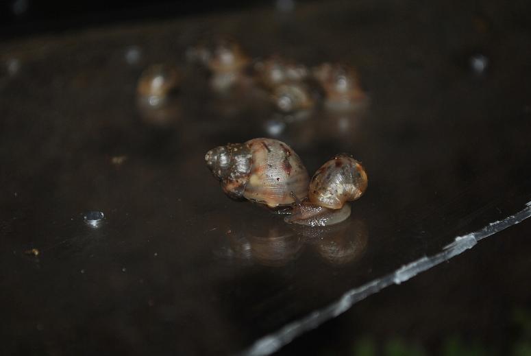 Von der Größe der Fulica ist alles dabei, kleinere von0,5 - 1cm und einige sind mit 2 cm auch schon am rumschnecken.