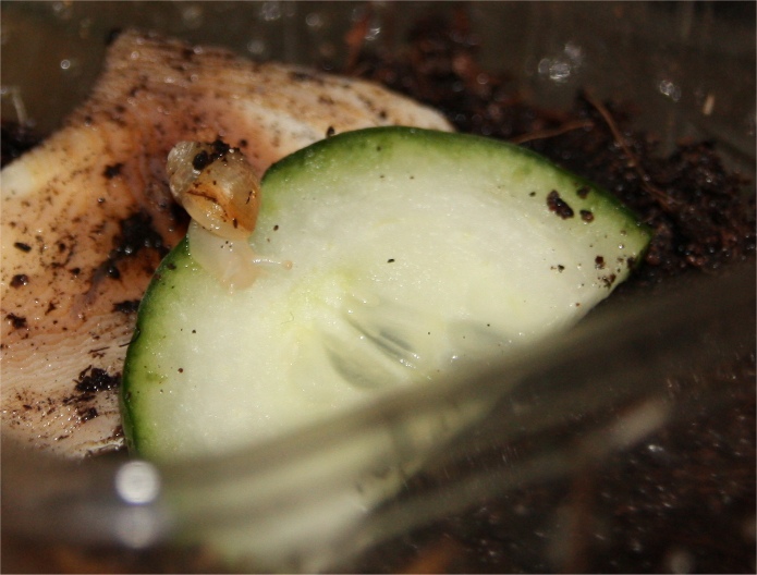 Seit letztem Samstag haben wir Neuankömmlinge. Eigentlich vier VA von einer Halterin aus Marburg. Zwei sind schon etwas größer, aber die beiden anderen sind sehr klein. Bei der einen denke ich nicht, dass sie durchkommt. Die Kleinen stehen auch im Becken, aber in einer Heimchendose, damit ich besser kontrollieren kann.