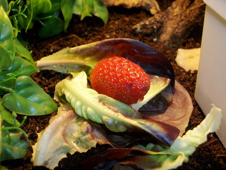 Leckeres Dinner für die Schneck. Wurde alles aufgegessen ausser die Erdbeere. :S