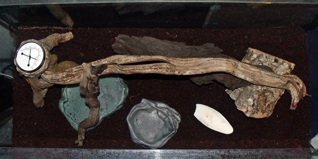 Habe ich für die Schnecken genug Platz am Boden gelassen? Die Futterschale werde ich wahrscheinlich nur ins Becken stellen, wenn es Futter gibt und die Badeschale werde ich dauerhaft im Becken lassen. Sepiaschale ist auch im Becken.