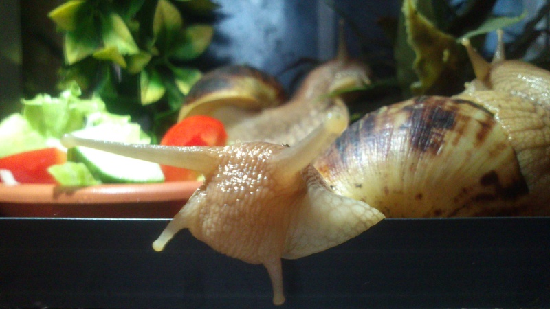 Bei meiner abendlichen Fütterung. Meine essen am liebsten Eisberg und Gurken. Über Frischen Löwenzahn aus dem Garten freuen sich alle am meisten. Der ist im nu weggeputzt.