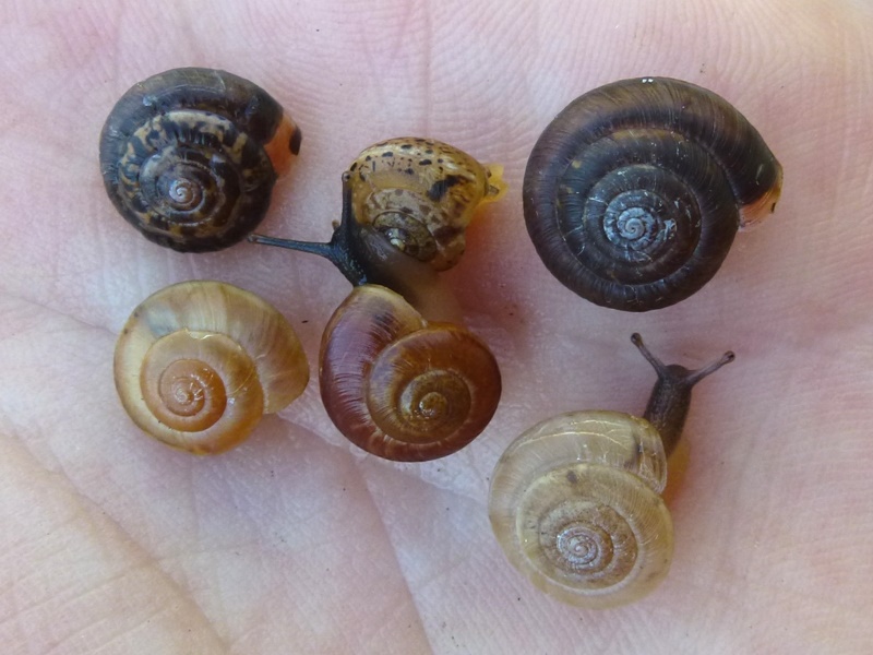 Direkt neben einem See habe ich eine Schneckenart an Bäumen gefunden, die teilweise sogar über Augenhöhe geklettert waren, das habe ich in dieser Menge bei Schnecken noch gar nicht beobachtet. Da tue ich mich allerdings bei der Bestimmung noch schwer - Fotos folgen morgen
