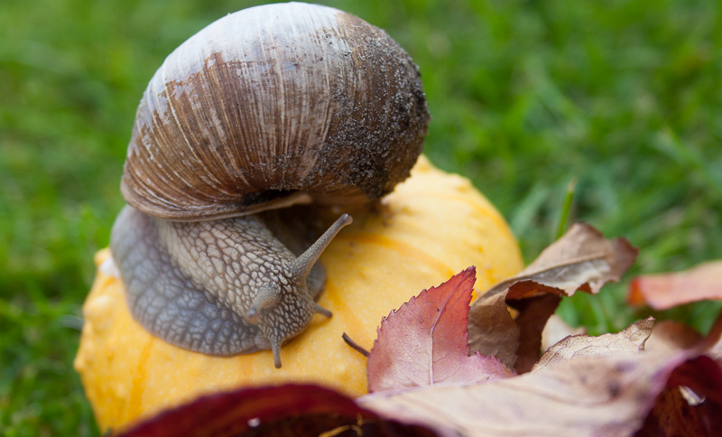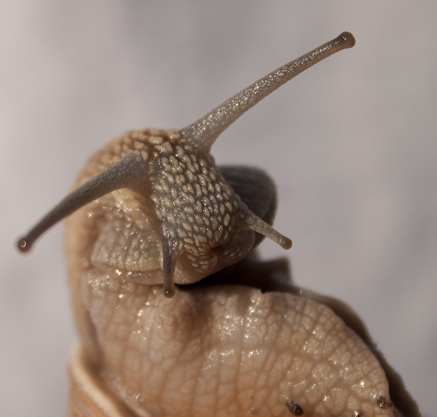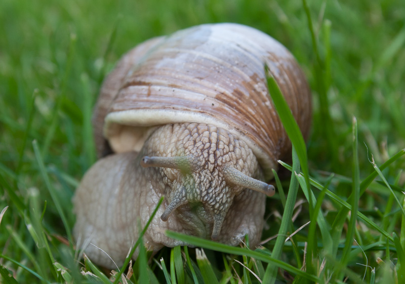 Und hier ein Weinbergschneckenbild. Sie kroch zufällig an unserem Gartenteich entlang: