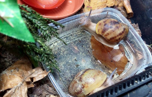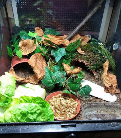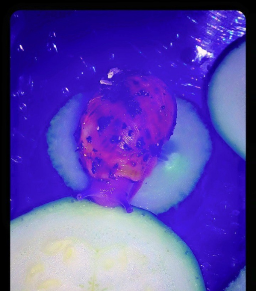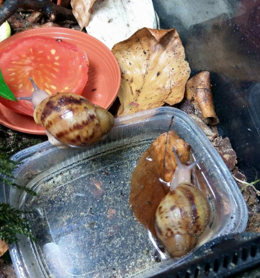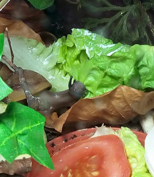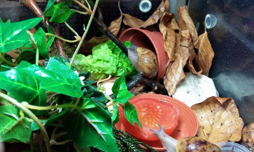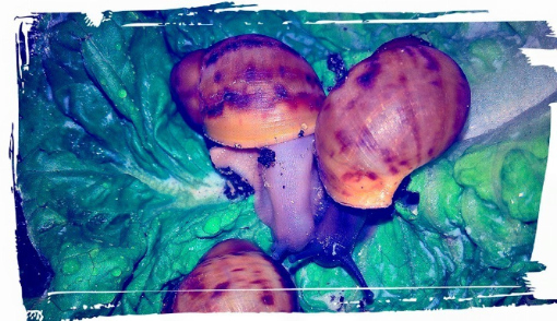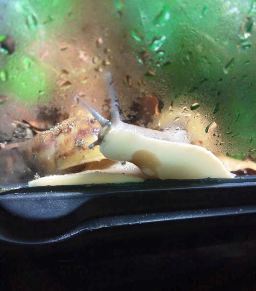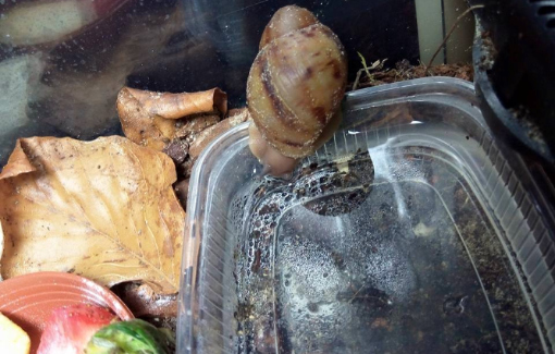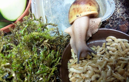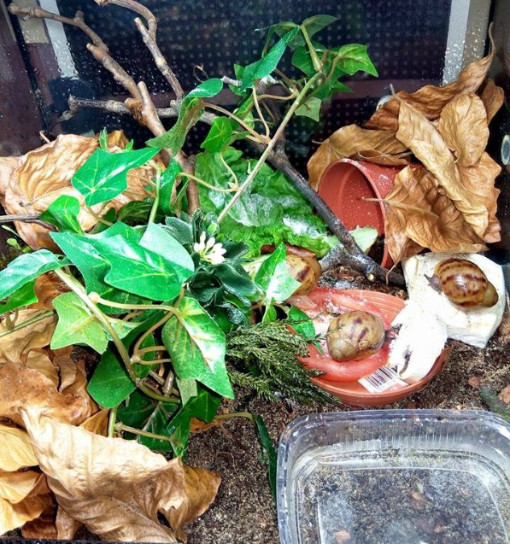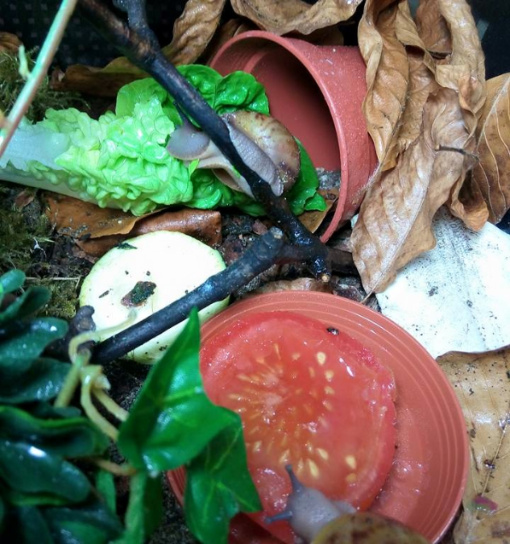 Ich habe nach einiger Zeit wieder angefangen Schnecken aufzunehmen. Drei sind bereits da, andere folgen noch. Ich habe endlich das Terra auf 27 ,2 Grad bekommen und die ouvums fühlen sich wohl. Sie schlafen viel, aber spät Abends und früh Morgens sehe ich sie immer fressen. Die Kompostwürmer fressen auch fleissig und haben sich unter dem Moos eine Bleibe gesucht. Ich seh einige kleine "Gänge" an der Scheibe und ab und an auch einen Wurm. Mein kleiner Sohn will immer Schnecken gucken. Er ist hin und weg. :grinz: