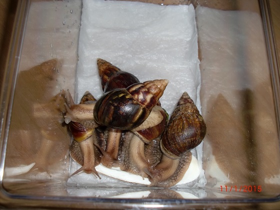 Es war im November 2014, als mich der Schneckenvirus sosehr ergriffen hatte, dass auch ich mir Achatschnecken anschaffen "musste". Das kam natürlich aus erster Linie durch das Forum. So richtig konnte ich mich nur nicht dazu durchringen, Schneckeneier in Massen einzufrieren. Aber damals hatte ich auch schon Pomatias, welche natürlich auch Eier gelegt haben und die Cornu aspersum. Als ich dann in einer Zoohandlung war und in einem Terrarium zwei Schneckenhäuser von Achatina fulica sah, wars um mich geschehen. Ich wollte natürlich nicht unbedingt Schnecken aus einer Zoohandlung, aber fragen kostet ja bekanntlich nichts. Ich fragte also einen Mann, der gerade da war und dieser wusste nichtmal,ob die Schnecken noch leben...