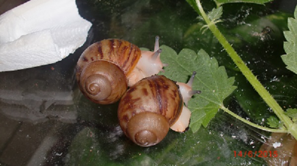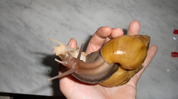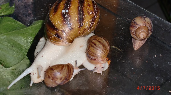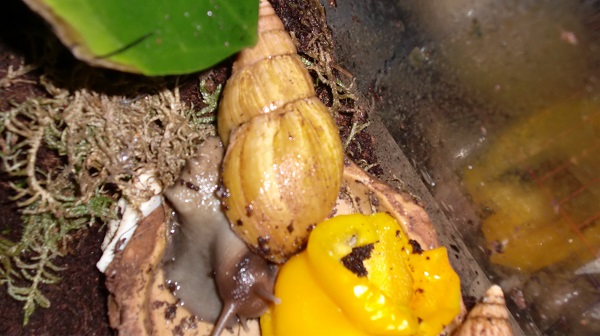 Der werte Herr hatte eine Heimchendose in der Hand, darin zwei Schnecken. Belesen wie ich war, erklärte ich ihm, dass es Achatina fulica waren. Tja, so schnell gings dann. Eine kostenlose Heimchendose voll Schneck...