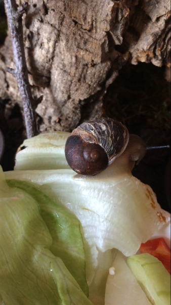 Heute habe ich die Bänder wieder frei gelassen. Während ihrer Zeit bei mir sind sie ausgewachsen und die beiden Cornus sind jetzt groß genug um alleine zu wohnen... Außerdem besser ich setze die Bänders aus während das wetter gut ist als wenn sie dann im herbst der Schlag trifft... Obwohl ich weiß das es richtig war - es schmerzt, vor allem bei "Heidi" (-Klum). Sie war bildhübsch und sie vermisse ich. Aber was will eine einzige Bänder unter Cornus? Ich denke es war richtig so - es waren langsam zu viele Schnecken für die kleine Box.