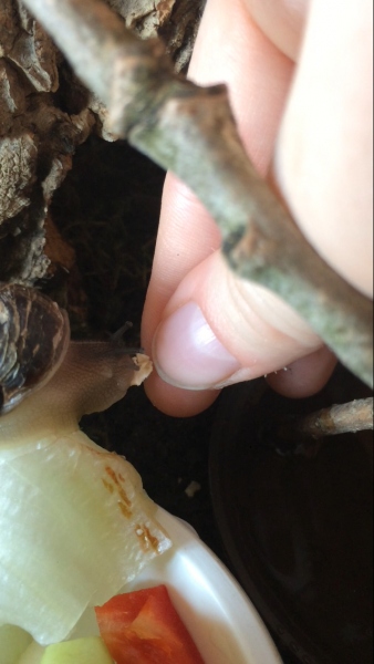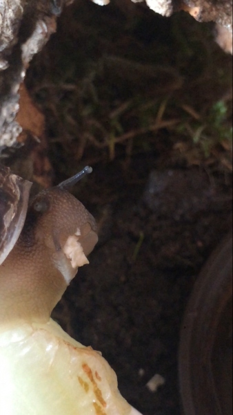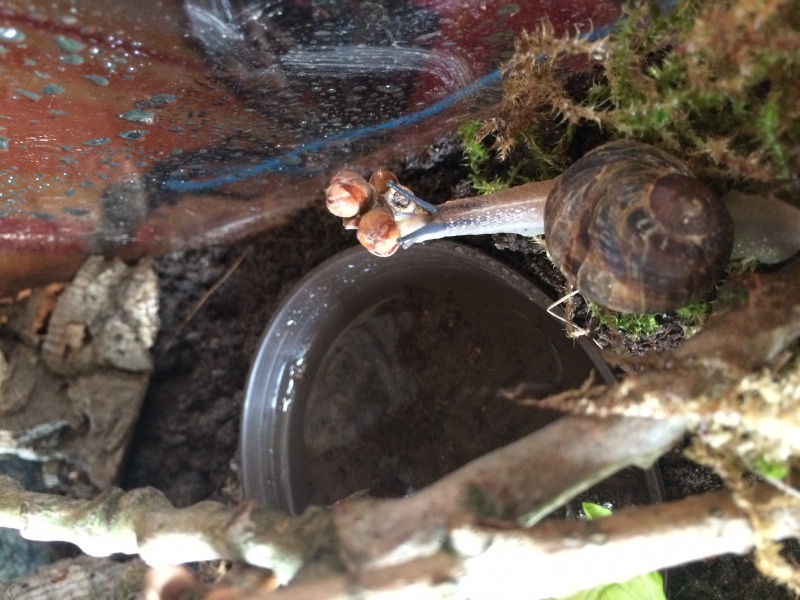 In der kleinen Box sind meine beiden Baby-Cornus wohl auf. Sie sind ja so hübsch - vor allem die ältere, Lissy. Ihr Gehäuse ist dunkel und genauso wie ich mir ihre drei Vorfahren gewünscht hätte ^^. Der kleine - inzwischen hat er einen Namen: Jim (von Jim Knopf) wächst auch prächtig wird aber wohl heller? nuja vllt dunkelt er noch nach aber so wie es jetzt aussieht habe ich zwei sehr verschiedene gesunde junge Schnecken da