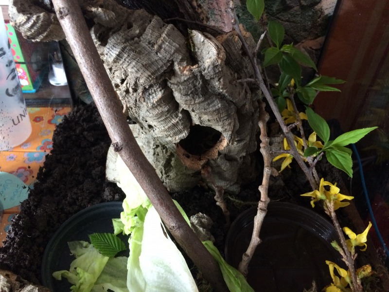 Das ist die "kleine" Box. In ihr wohnen aktuell Lissy und Jim. Sie ist zwar kleiner, verfügt dennoch über alles was sie brauchen. Auf diesem Bild stehe da Haferflocken - aaaber, die bekommen sie beinahe nie - das war als ich für 5 Tage weg war, die Urlaubsnahrung.