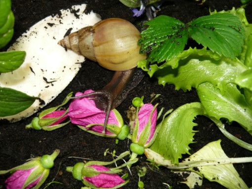 Und auch die müdeste Schneck läßt sich mit einem Salatblatt aus dem Laubparadies hervorlocken...
