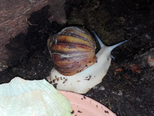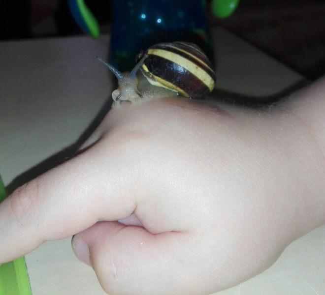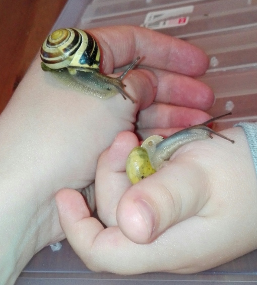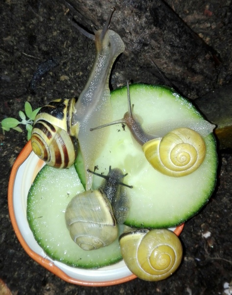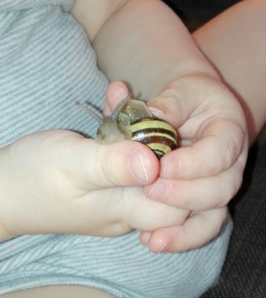 keine Sorge also. Die Tiere werden schön in Ruhe gelassen seit dem Foto oben. Der Kleine hat seinen “Bedarf“ wohl gestillt nach dem einmaligen halten der Hainbänderschnecke.
