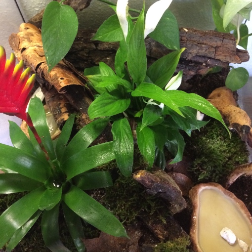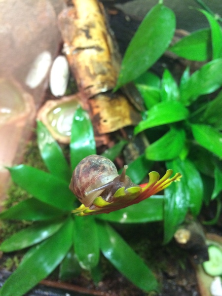 Sie wachsen und gedeihen prächtig. Bisher hatte ich sie in einer Faunabox. Nun durften sie umziehen. Das Einrichten des Terrariums hat mir riesige Freude gemacht. Im Wald habe ich rumliegende Äste, Rinde, Laub und Moos eingesammelt. Als Bodenuntergrund habe ich lehmige Walderde, Kokoshumus und Komposterde gemischt (natürlich auch Kalk). Moos, Laubblätter, Äste, Rinde und Pflanzen (im Topf in der Erde) bieten viele Versteckmöglichkeiten. Evtl. lasse ich nun noch Plexiglas zuschneiden um ein Teil des oberen Gaze-Deckel abzudecken damit ich die Luftfeuchtigkeit besser halten kann. Durch die Pflanzen und das tägliche Sprühen geht es momentan noch ganz gut. Ich finde dass sie ein sehr natürliches und gemütliches Schneckenzuhause haben. Und es riecht sooooo herrlich nach Wald!