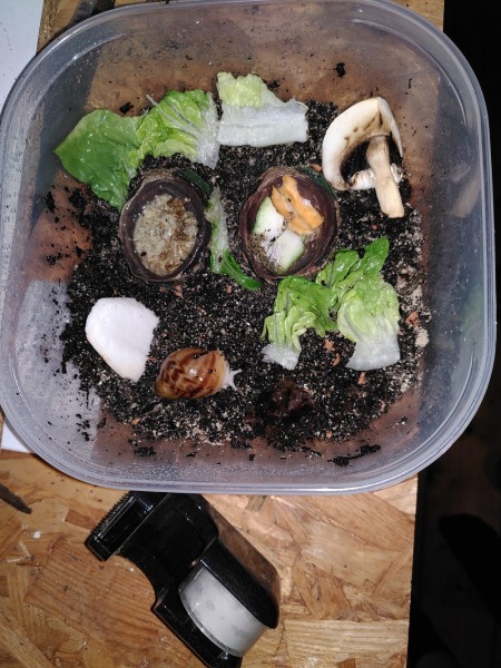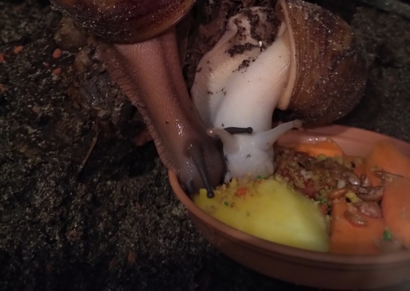 ), Nail hält jetzt kurz nach Dende eine Trockenruhe und gestern habe ich Piccolo und Dende in flagranti beobachten können. Danach haben sie sich zu zweit über einen halben Champignon hergemacht. Generell futtern und wachsen sie ordentlich