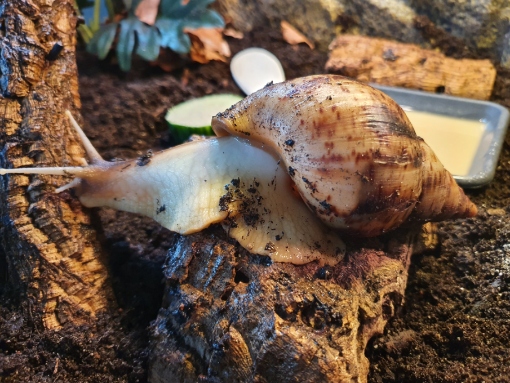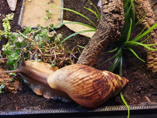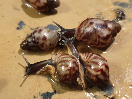 3 Lissachatina Reticulata und ihr erster Nachwuchs.