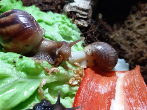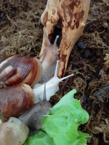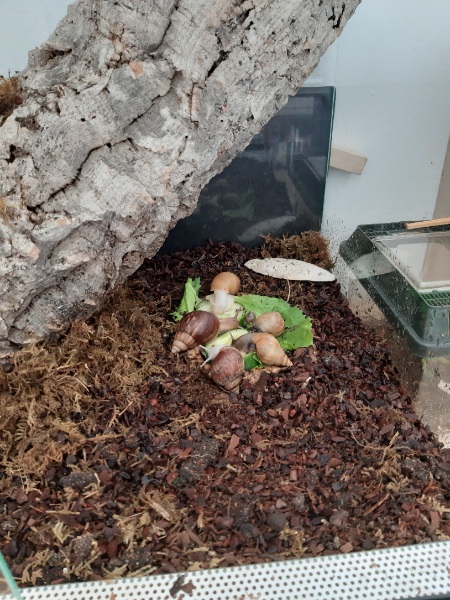 vor genau drei Wochen habe ich mir meine fünf Achatina fulica ins Haus (oder eher die Wohnung) geholt. Persönlich, nicht per Post. Die Racker waren mir die Tagesreise quer durch Österreich wert