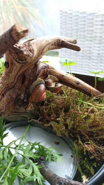 Das Häuschen war zersplittert und ich wollte eigentlich nur schauen, ob ich irgendwie behilflich sein konnte. Damit er nicht so alleine ist habe ich ihm Gesellschaft besorgt. Die beiden sind auch gleich aufeinander los gestürmt und schon bald habe ich ein Gelege gefunden. Nun sind wir eine richtige Familie geworden:)