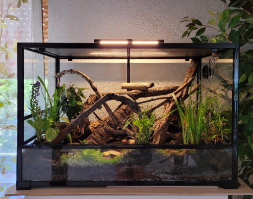 Extra Pflanzen-Lampen habe ich keine, das Zimmer ist sehr hell (keine direkte Sonneneinstrahlung, aber hell, bis auf die Höhlen und Verstecke der Schnecken natürlich).