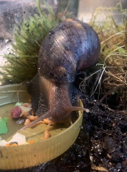 Dann habe ich noch den Brutus die Achatina. Brutus kam etwas unerwartet und nicht so ganz gesund, weshalb er auch Anfangs leider alleine in Quarantäne verbracht hat.