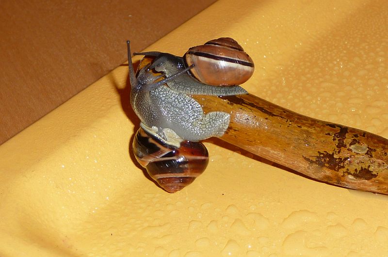 Ich halte derzeit 5 erwachsene Hainbänder und ca. 30 Babys. Für die Fotosession hatten sie "Freigang" unter Aufsicht
