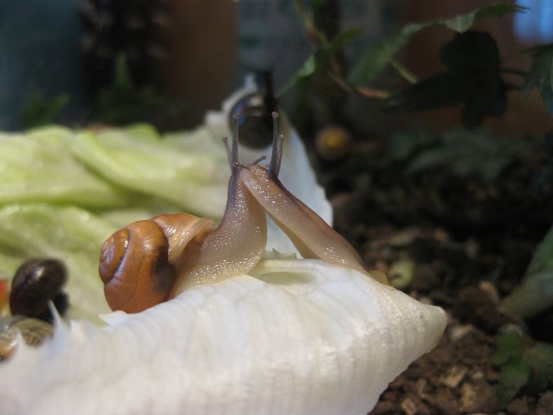 die 2 gartenbänderschnecken haben auch namen, die eine ist gelb mit braunen streifen , wird A - Schneckchen genannt