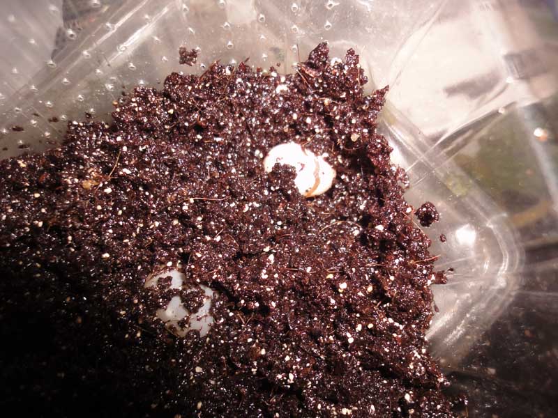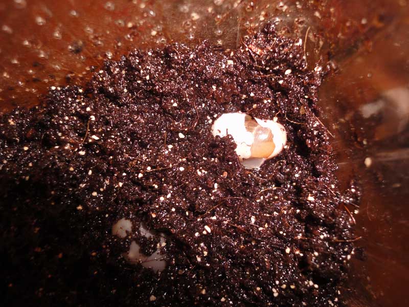 Ach ja, das Kleine ist schon geschlüpft, sitzt nun aber im Substrat und zeigt mir nur seinen süßen Hintern :-D