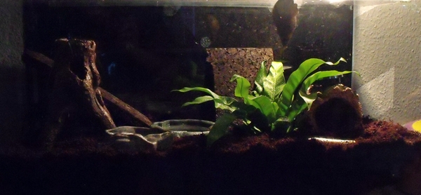 Die Beleuchtung ist nur für Fotozwecke vom anderen Terrarium geliehen, doch früher oder später bekommen auch die fulica eine Lampe. Die Birne habe ich schon.