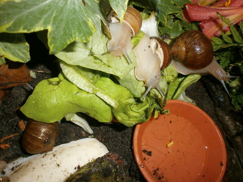 ich halte 4 Weinbergschnecken (Helix pomatia).