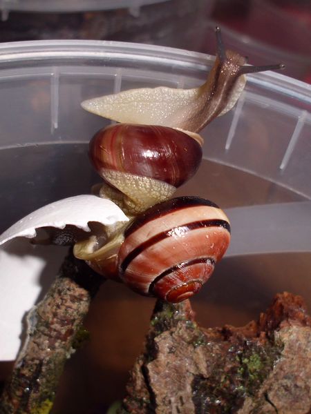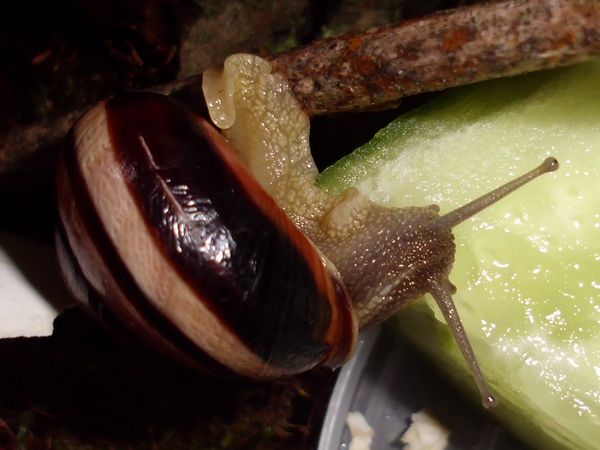 Eine kleine Haarschnecke und zwei kleine Laubschnecken gibt es noch, eine der drei hat ebenfalls ein oder zwei Gelege produziert, eigentlich habe ich die Haarschnecke in Verdacht, das heißt aber nichts. Die sollten jedenfalls auch nur ein kurzes Gastspiel bei mir geben und dann zurück nach Nettetal kommen.