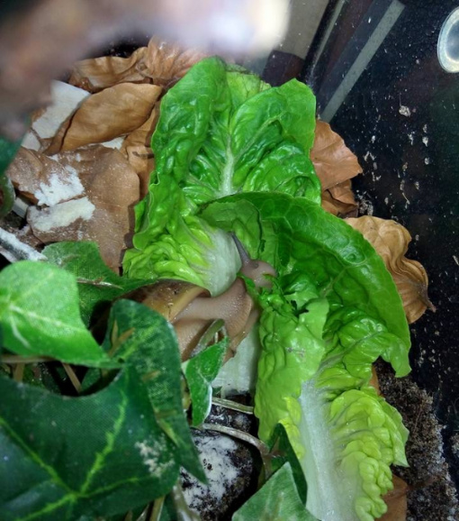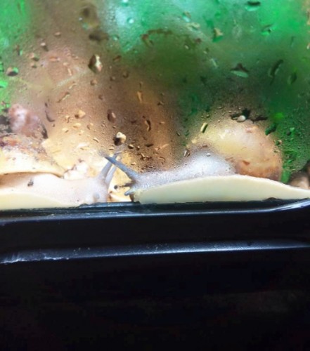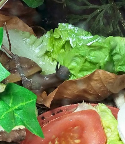 Ich habe nach einiger Zeit wieder angefangen Schnecken aufzunehmen. Drei sind bereits da, andere folgen noch. Ich habe endlich das Terra auf 27 ,2 Grad bekommen und die ouvums fühlen sich wohl. Sie schlafen viel, aber spät Abends und früh Morgens sehe ich sie immer fressen. Die Kompostwürmer fressen auch fleissig und haben sich unter dem Moos eine Bleibe gesucht. Ich seh einige kleine "Gänge" an der Scheibe und ab und an auch einen Wurm. Mein kleiner Sohn will immer Schnecken gucken. Er ist hin und weg. :grinz: